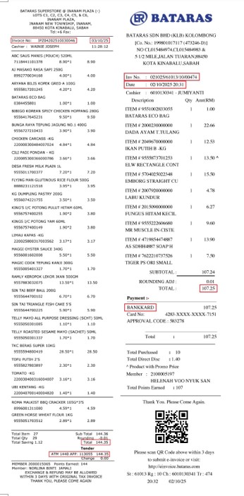 Maklumat resit yang tepat dan jumlah pembelian (contoh