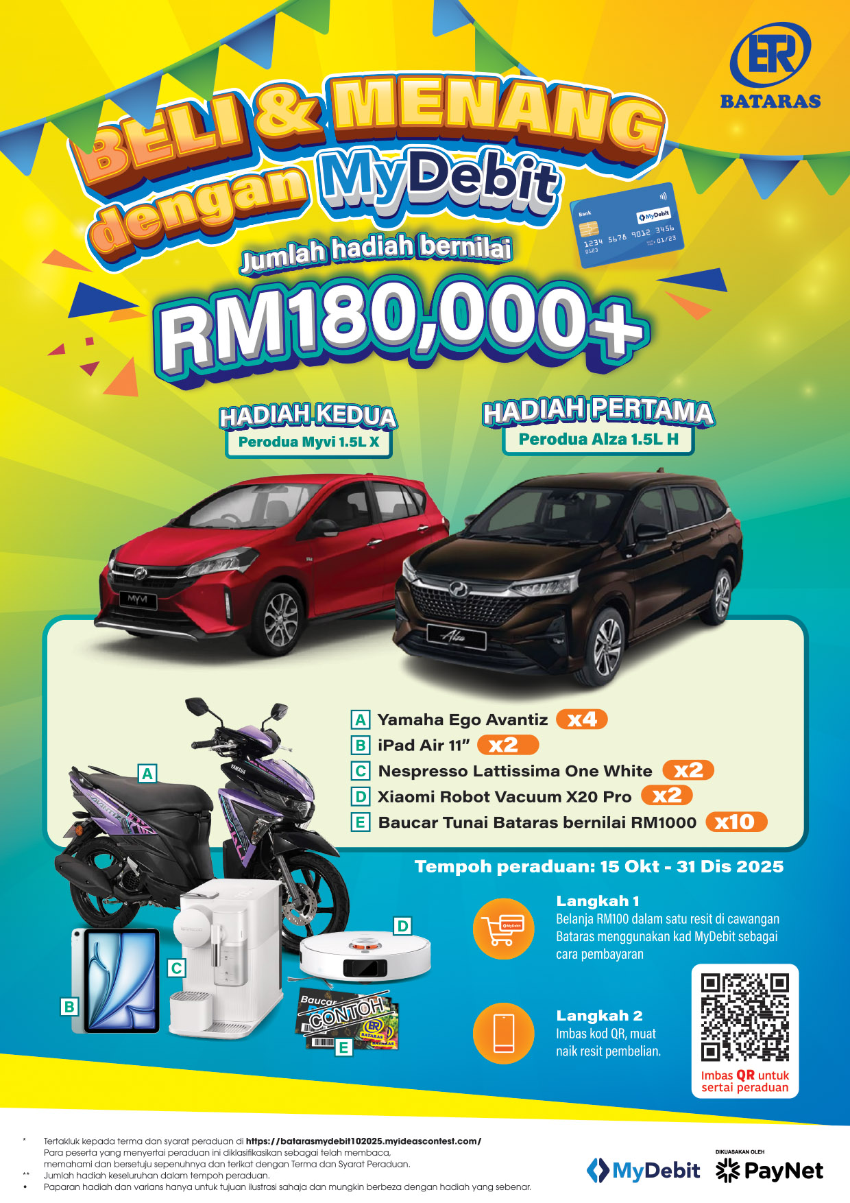 1. “BELI & MENANG dengan MyDebit” contest (“Contest”) is organized by BATARAS SDN. BHD. (Company No.: 0473246-D / 199801017117) (“The Organiser’) in collaboration with Payments Network Malaysia Sdn. Bhd. (Company No.: 836743-D / 200801035403) (“PayNet”).